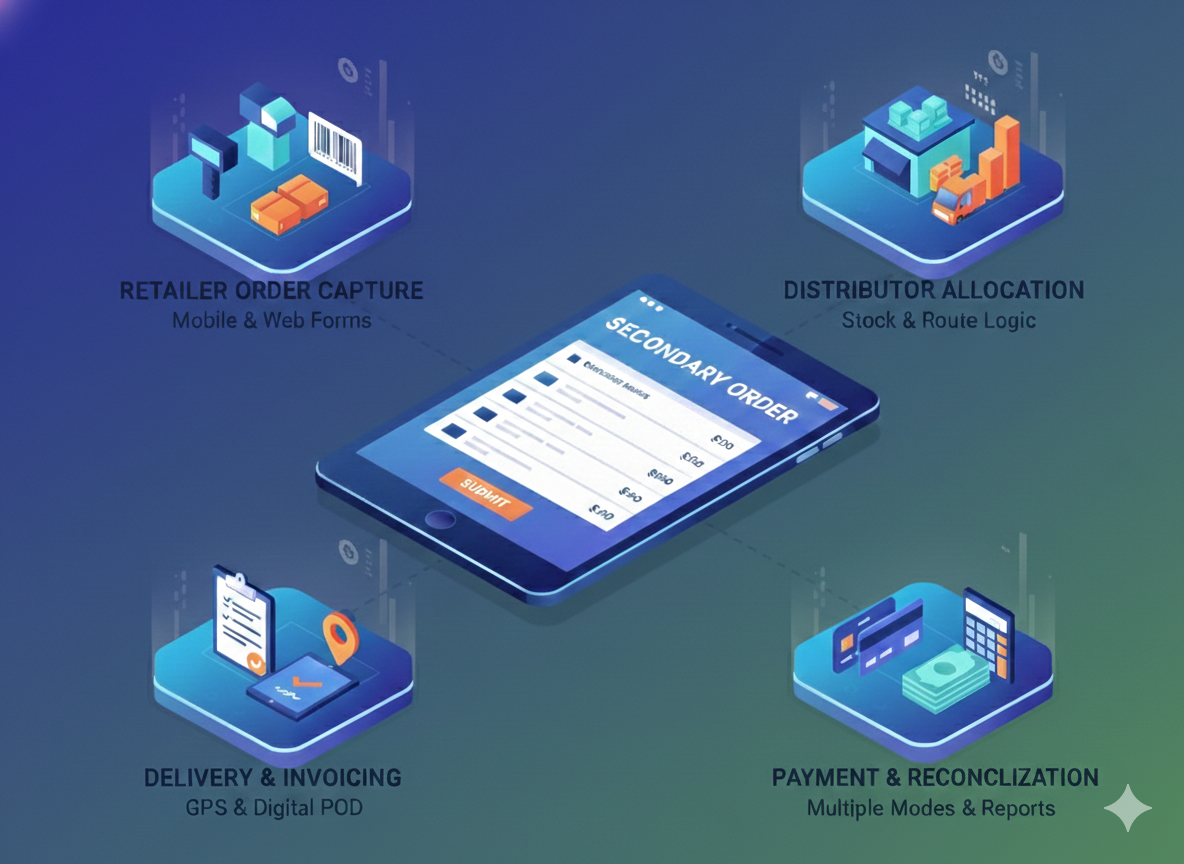 • Advanced Order & Inventory Management Manage primary and secondary orders with accurate, real-time inventory visibility to ensure faster and error-free order fulfillment.